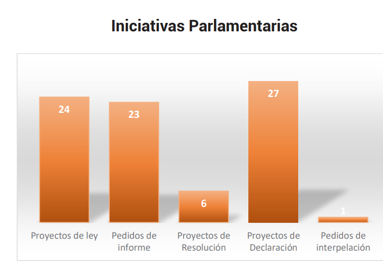 En el presente apartado se expone la producción formal de mi actividad como legislador, la misma se halla registrada mediante el Sistema de Información Legislativa Paraguay SILPy1, donde además de estos indicadores que se hallan resumidos para mejor análisis, puede encontrarse el detalle de cada uno de los proyectos presentados, la documentación respaldatoria y el circuito de tratamiento que ha recibido cada uno